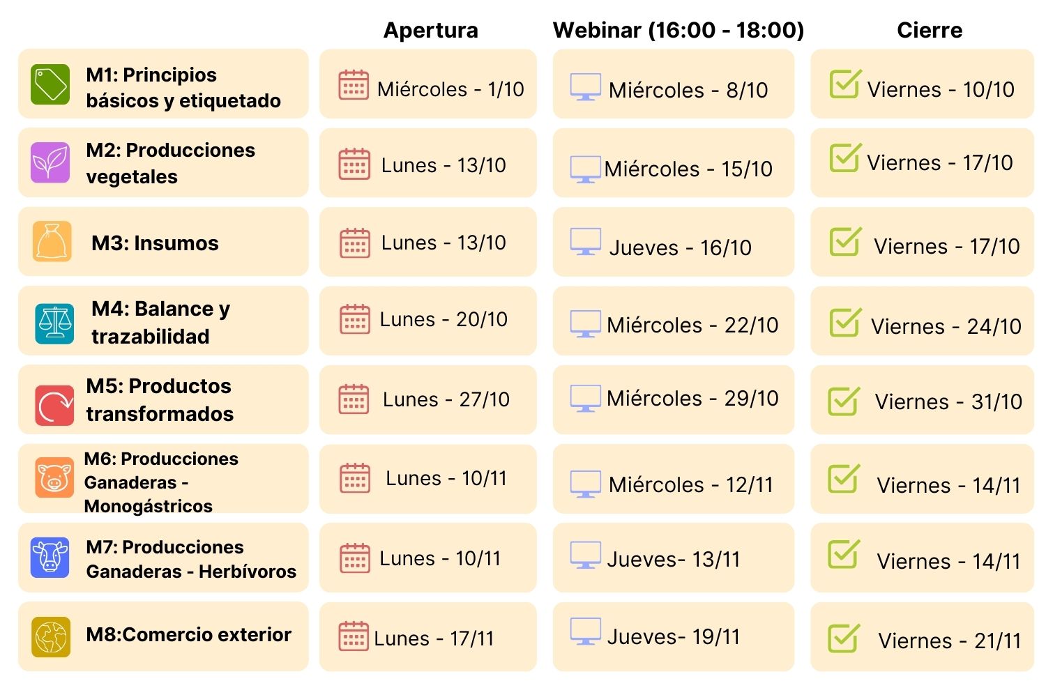 Con más de 10 años de experiencia formando a profesionales del sector, en nuestro curso tendrás acceso a contenidos de referencia sobre etiquetado, producción vegetal y animal, insumos, balance y trazabilidad, productos transformados y comercio exterior. Nuestros programas han sido diseñados por expertos, brindando una visión práctica y actualizada, basada en los estándares más exigentes y las normativas vigentes.